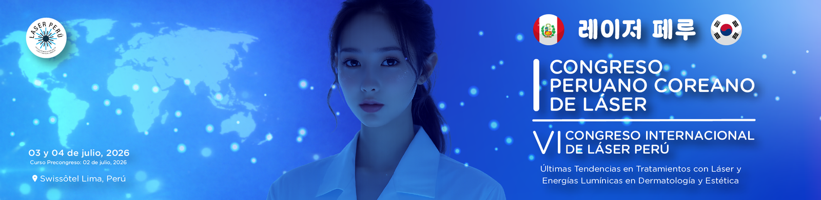 El I Congreso Peruano Coreano de Láser y el VI Congreso Internacional de Láser Perú reunirán a especialistas para compartir las últimas tendencias y avances en tratamientos con láser y energías lumínicas aplicadas a la dermatología y estética. El evento se realizará los días 3 y 4 de julio de 2026 en el Swissôtel Lima, con un curso precongreso el 2 de julio.